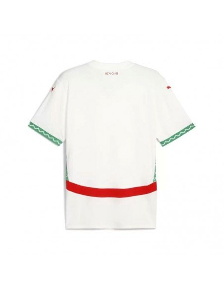 Le maillot extérieur Maroc 2025, arbore des broderies et des symboles inspirés de la culture Amazigh. Les couleurs rouge et verte rappellent celles du drapeau marocain, tandis que l’utilisation de caractères en Tifinagh au dos du maillot met en valeur la richesse et la diversité culturelle du pays.