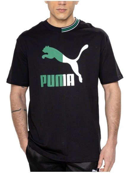 Puma Classics T-Shirt Homme Classique mais différent. Ce t-shirt Puma présente des détails sur le col et un logo imprimé qui lui donnent l'apparence de deux t-shirts différents en un.