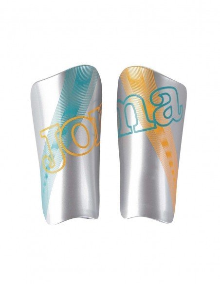 Protège-tibias argentés Joma. Ils sont fixés par une sangle élastique et une fermeture auto-agrippante. Ils sont renforcés en EVA et offrent une protection optimale. Ces protège-tibias sont conçus pour les personnes ayant 1m60 à 1m70,Design métallisé avec impression personnalisée et logo Joma qui se forme en joignant les deux protège-tibias.