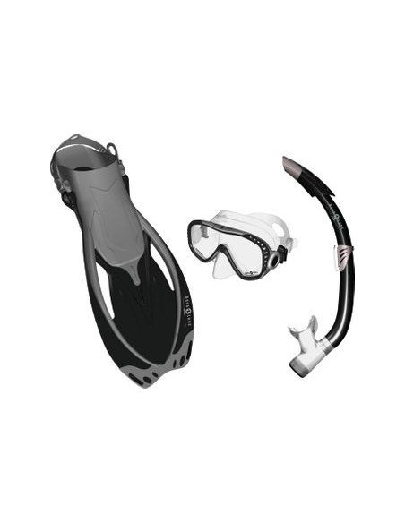 Masque mono optique homme offrant un grand champ de vision. Dispose de boucles de réglage rapide. Tuba avec purge anti-clapot et dispose d'une agrafe réglable. Palme bi-matière compacte, réglage rapide.